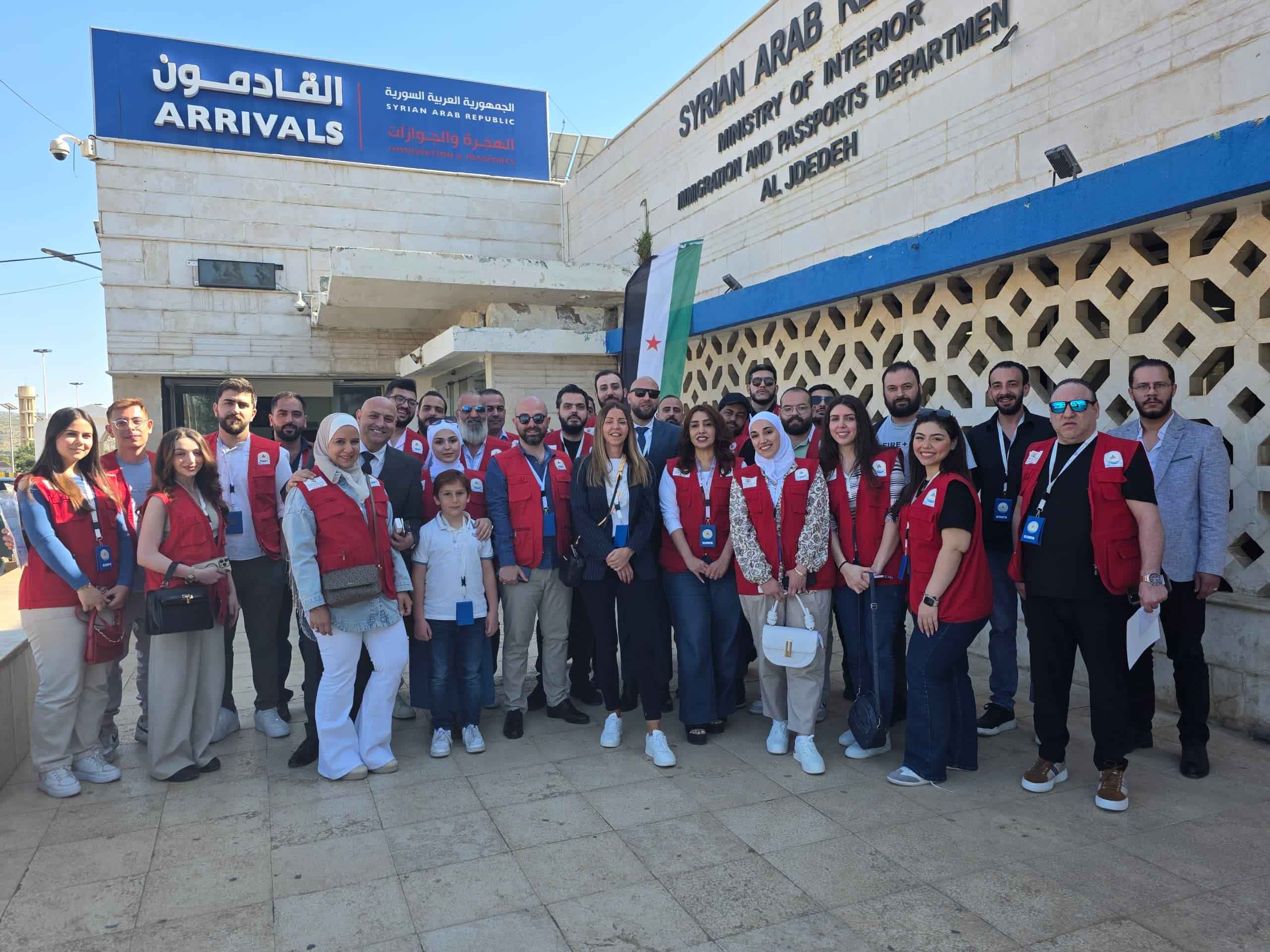 وكان في مقدمة مستقبلي الوفد مدير المعبر السيد قاسم القاسم وعدد من كوادر المعبر، إلى جانب فريق الاداري الهيئة الدولية لحماية المدنيين في كل من هولندا وسوريا، والذي وصل خصيصًا من لاهاي إلى دمشق للمشاركة في مراسم الاستقبال الرسمي للسيدة فانيا، والتنسيق لعقد سلسلة لقاءات تشاورية مع الجهات الحكومية السورية.
